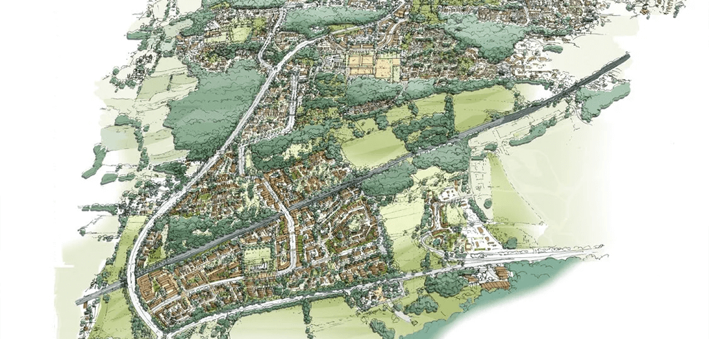 This includes taking note of Gatwick Airport’s planned expansion, the proposed West Crawley Relief Road, a complex flood relief strategy, and protecting the setting of old Ifield village. The proposals are for: over 3000 homes (of which 40% will be affordable); 1000 jobs; 3 schools and a local centre; set in over 50 % open space. Particular care has been taken to protect the setting of Ancient Woodland and other important wildlife sites.