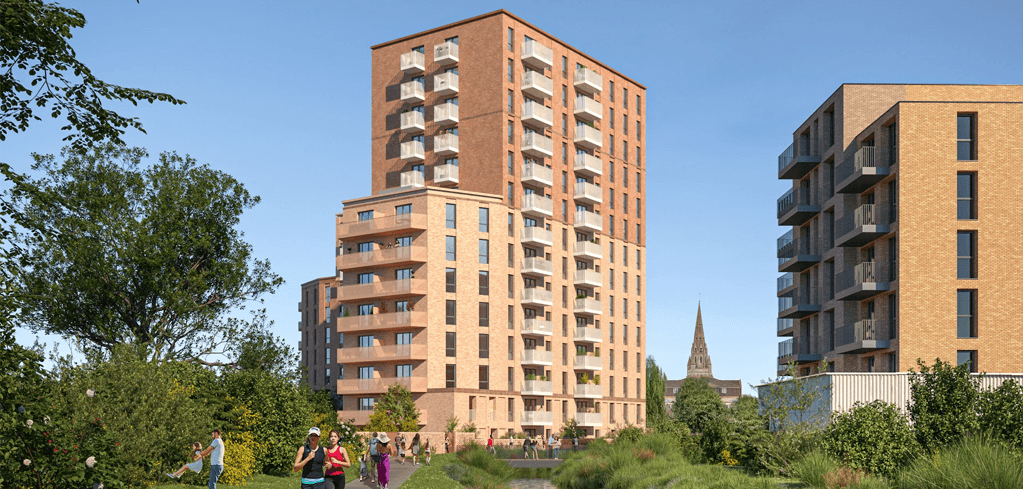 A planning application was prepared and submitted a planning application for 176 residential units, of which 84 were affordable, split across two blocks varying from 11 storeys to 14 storeys. The proposals also include a total of 2,929sqm of amenity space and public realm improvements at the site boundaries.