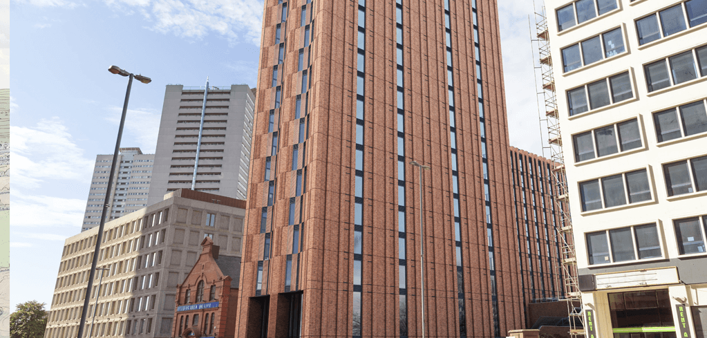 Our Planning and Development Team (Midlands Region) secured detailed planning permission for 540 units of purpose-built student accommodation (PBSA), including amenity space and landscaping at Land at Gough Street/Suffolk Street Queensway, Birmingham, B1 1LT.
