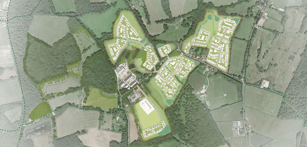The residential scheme, known as ‘Rickmans Green Village’, is set around a mixed use village centre which is the subject of a separate outline application. The village includes a culinary school, a glamping and hospitality development, a rural enterprise centre, and a farm shop.