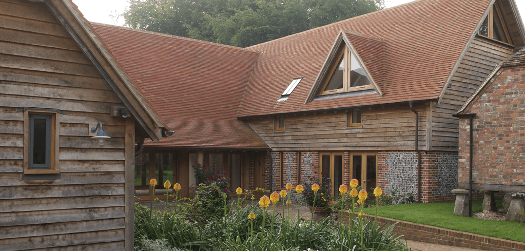 The client’s brief included the use of timber from the Estate to create a sustainable building. Replacing a 1970’s concrete farm building the proposal has been designed as a Green Oak framed barn; utilising ground source heat pump technology, solar collectors and rain water harvesting. In addition much of the knapped flint to the external walls was sourced from the estate’s fields. The resultant building houses an eclectic mix of uses within a modern interpretation of a traditional oak framed barn.