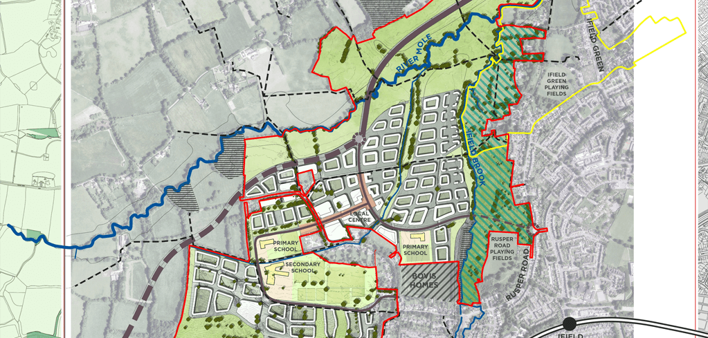 Carter Jonas were commissioned by Homes England to plan this 190 ha. site as a comprehensive urban extension of the town. This includes taking note of Gatwick Airport’s planned expansion, the proposed West Crawley Relief Road, a complex flood relief strategy, and protecting the setting of old Ifield village.